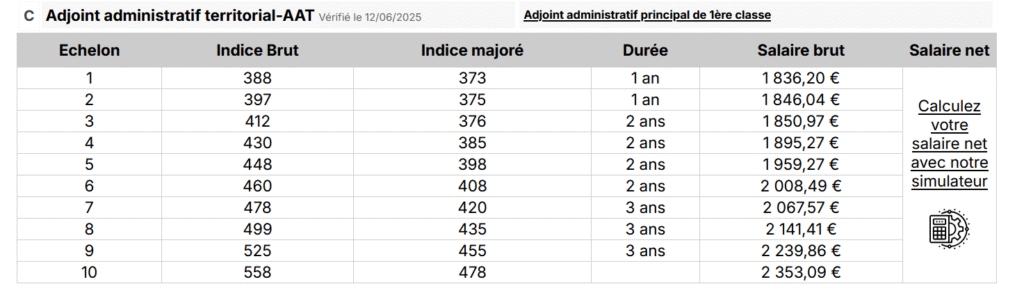 Adjoint administratif principal 1ère classe -Grille indiciaire (Source : Emploi Collectivités)Par UNSA_CNFPT / 12 septembre 2025 Cliquez sur le lien pour accéder à la grille Publications similaires : Ingénieur territorial – Grille indiciaire (source : Emploi Collectivités) Ingénieur territorial principal – Grille indiciaire (source : Emploi Collectivités) Attaché principal – Grille indiciaire (Source : Emploi Collectivités) Attaché territorial – Grille indiciaire (Source: Emploi Collectivités)