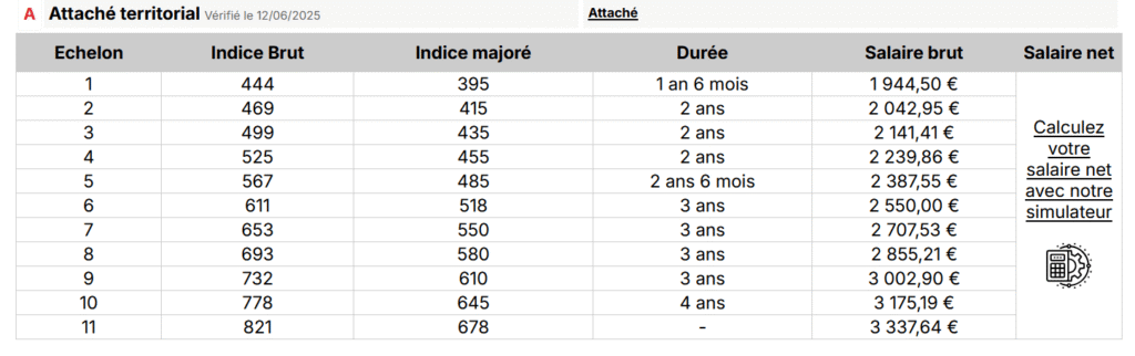 - Ingénieur territorial principal – Grille indiciaire (source : Emploi Collectivités)
