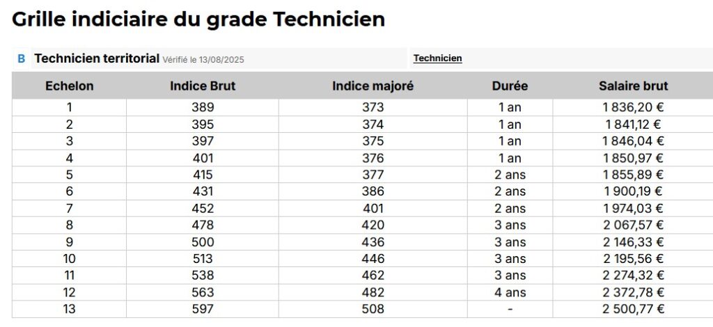 - Technicien principal de 2ème classe – Grille indiciaire (Source : Emploi Collectivités)