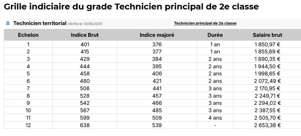 - Ingénieur territorial – Grille indiciaire (source : Emploi Collectivités)